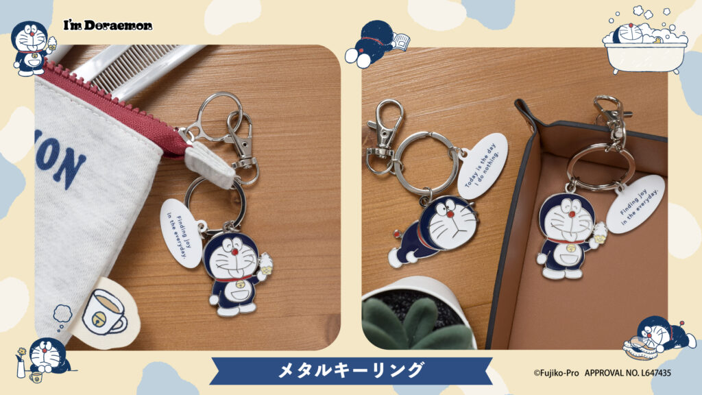 日々の小さな幸せを大切にしたり、何もしない日を楽しんだりする姿が愛らしいドラえもんのキーリングです。